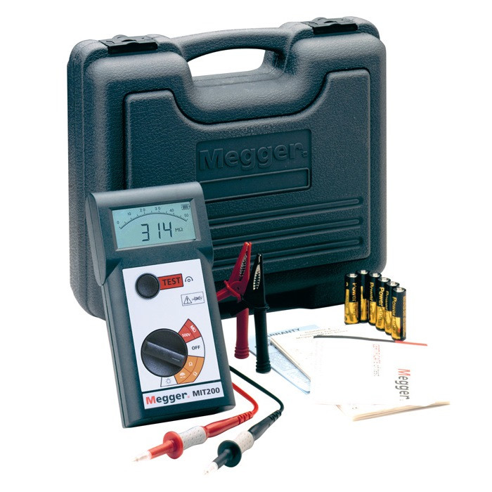 Мегаомметр Megger MIT210 – универсальное измерительное устройство для получения значений сопротивления и напряжения электрической цепи. Диапазон измерения сопротивлений устройства находится в промежутке от 10 кОм до 1000 Мом, допустимое номинальное напряжение сети постоянного тока достигает 1000 вольт. Прибор может использоваться для тестирования целостности изоляции и проводимости электрических цепей.
